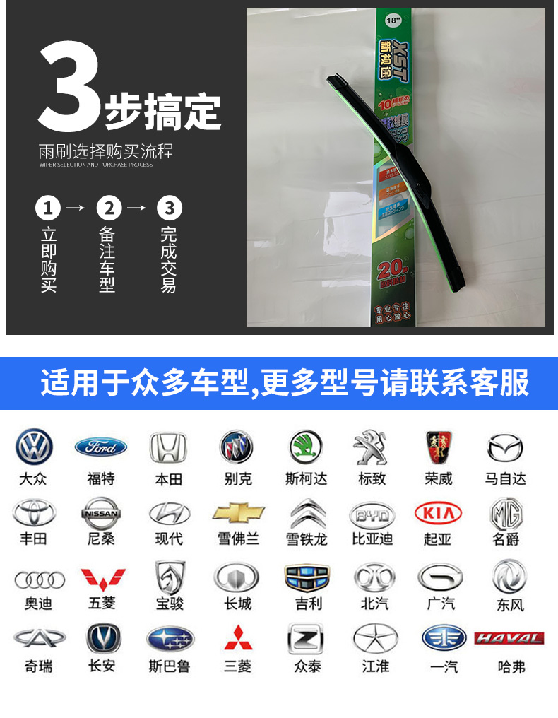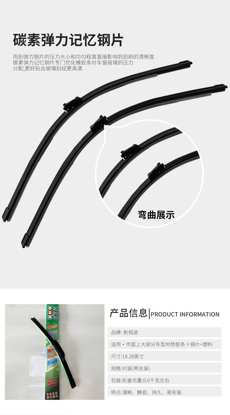 本公司產(chǎn)品涵蓋通用無(wú)骨雨刷、多功能一體雨刷、專(zhuān)車(chē)專(zhuān)用定制雨刷、雪刷等。我司產(chǎn)品外觀款式設(shè)計(jì)別具風(fēng)格,特別在硅膠膠條方面,歷經(jīng)二十多年的研發(fā)改良,有著獨(dú)特的開(kāi)發(fā)和應(yīng)用經(jīng)驗(yàn),在大中華區(qū)域獨(dú)樹(shù)一幟。